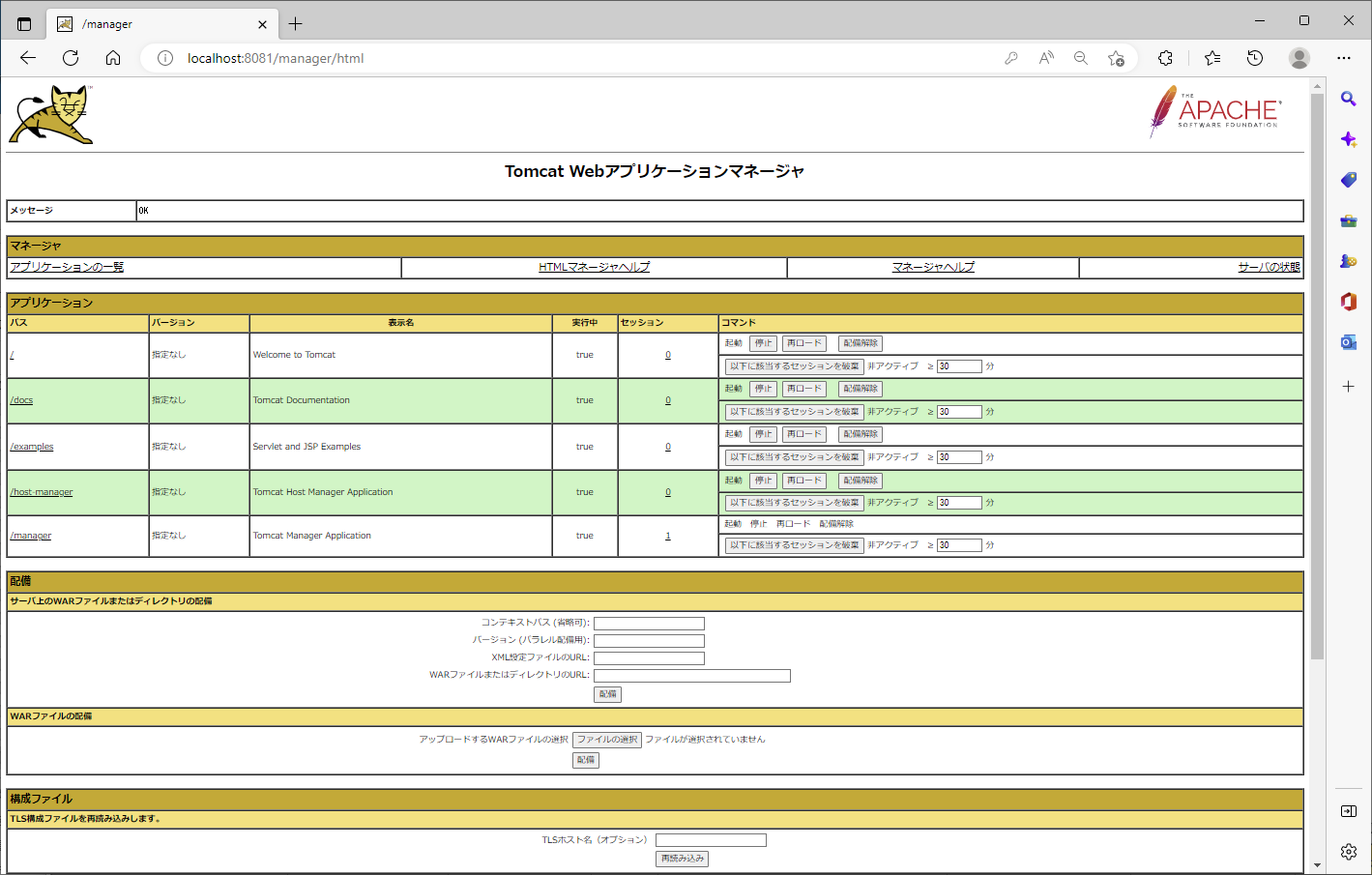 なお、Tomcat 8 以降からマネージャアプリは、リモートからの接続では機能しないようになりました。