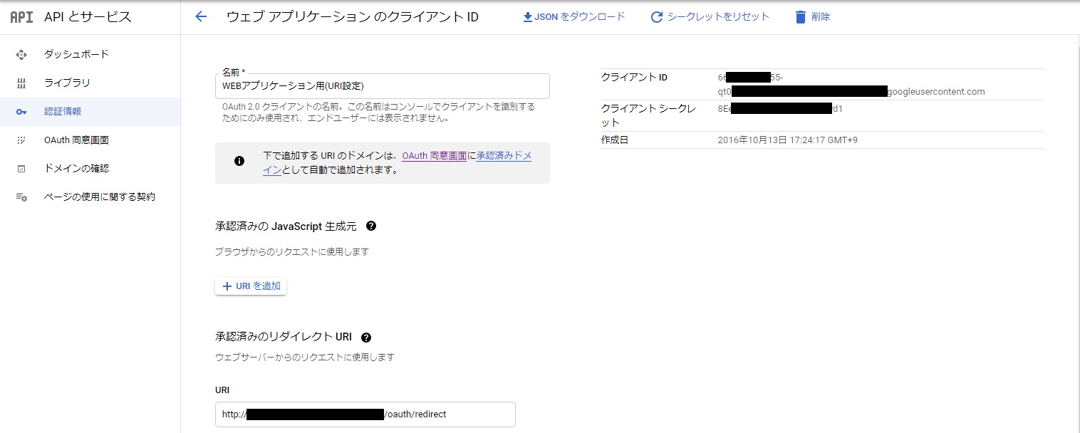 取得したクライアントIDとリダイレクトURIを設定します。